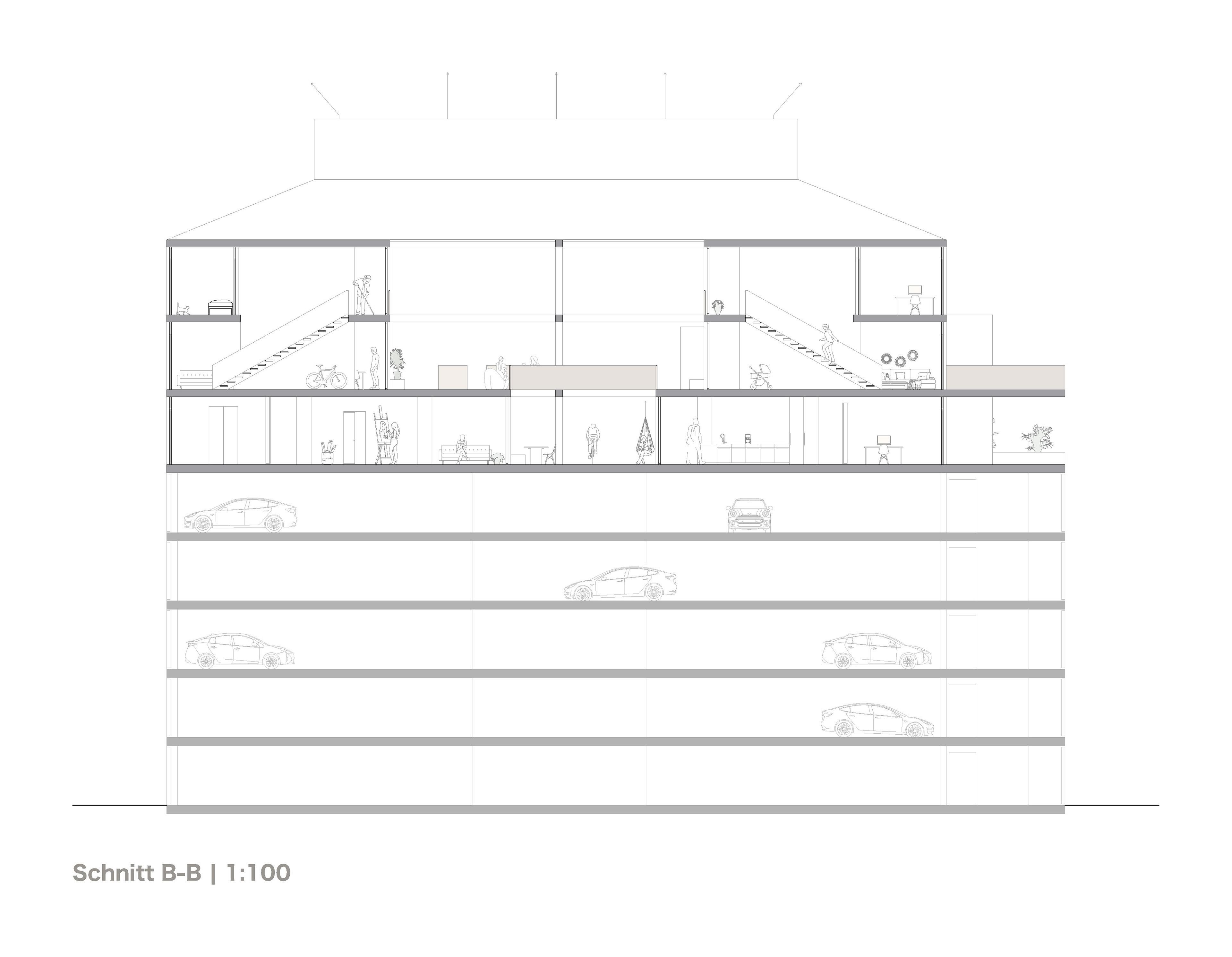 Die Umnutzung des Parkhauses als Grundlage für die neue Wohnsiedlung stellt einen Schritt in Richtung effizienterer Raumnutzung und ökologischer Nachhaltigkeit dar. Das Projekt, bietet einen Einblick in mögliche Wege zur Entwicklung urbaner Wohnkonzepte der Zukunft. Es zielt darauf ab, natürliche Ressourcen zu nutzen, um den Energieverbrauch zu senken und ein umweltfreundliches Wohnen zu unterstützen, wobei es gleichzeitig die Herausforderungen und Grenzen solcher Ansätze anerkennt.